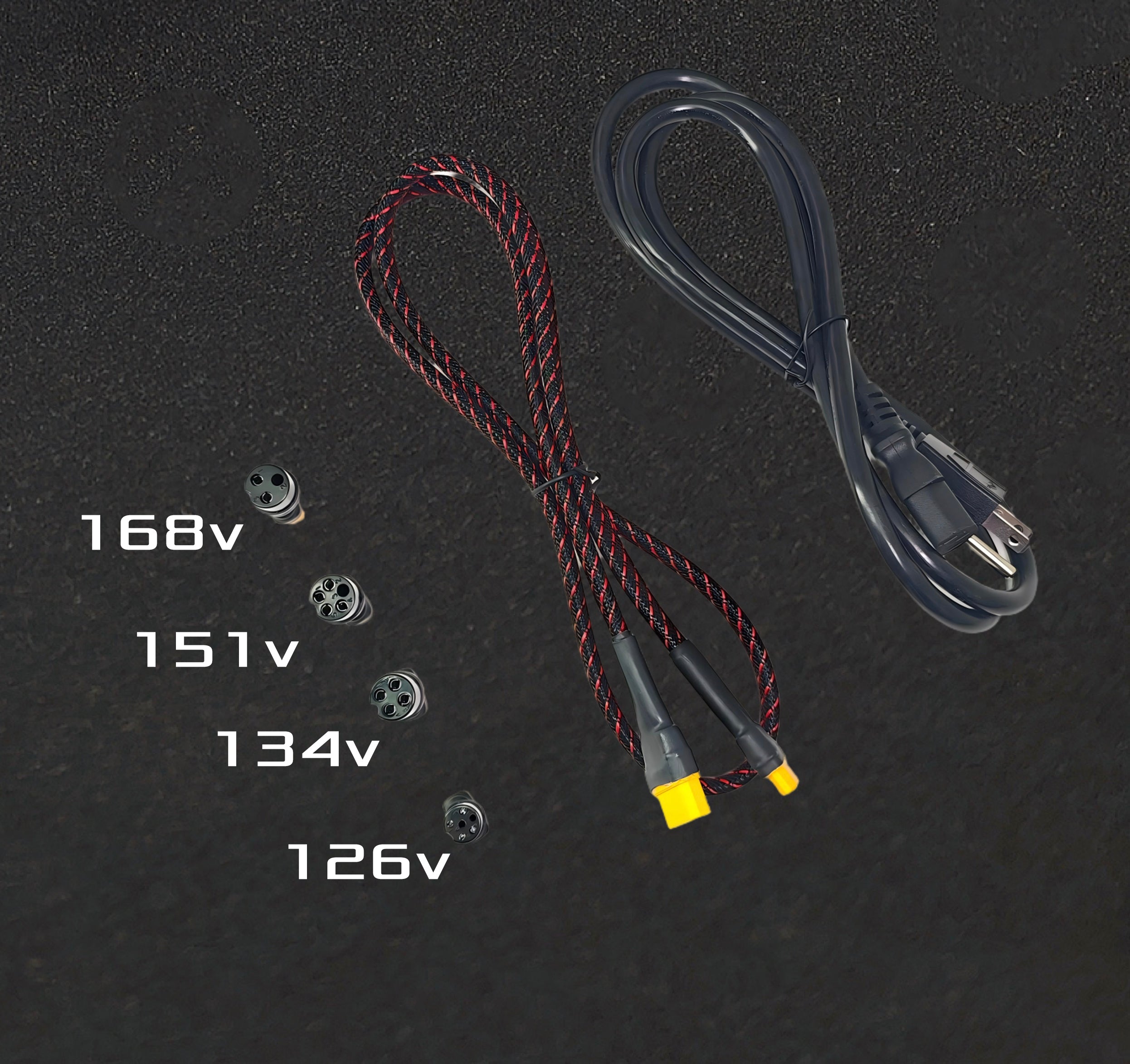 Charging port for wheels : 168V / 151V / 134V / 126V
